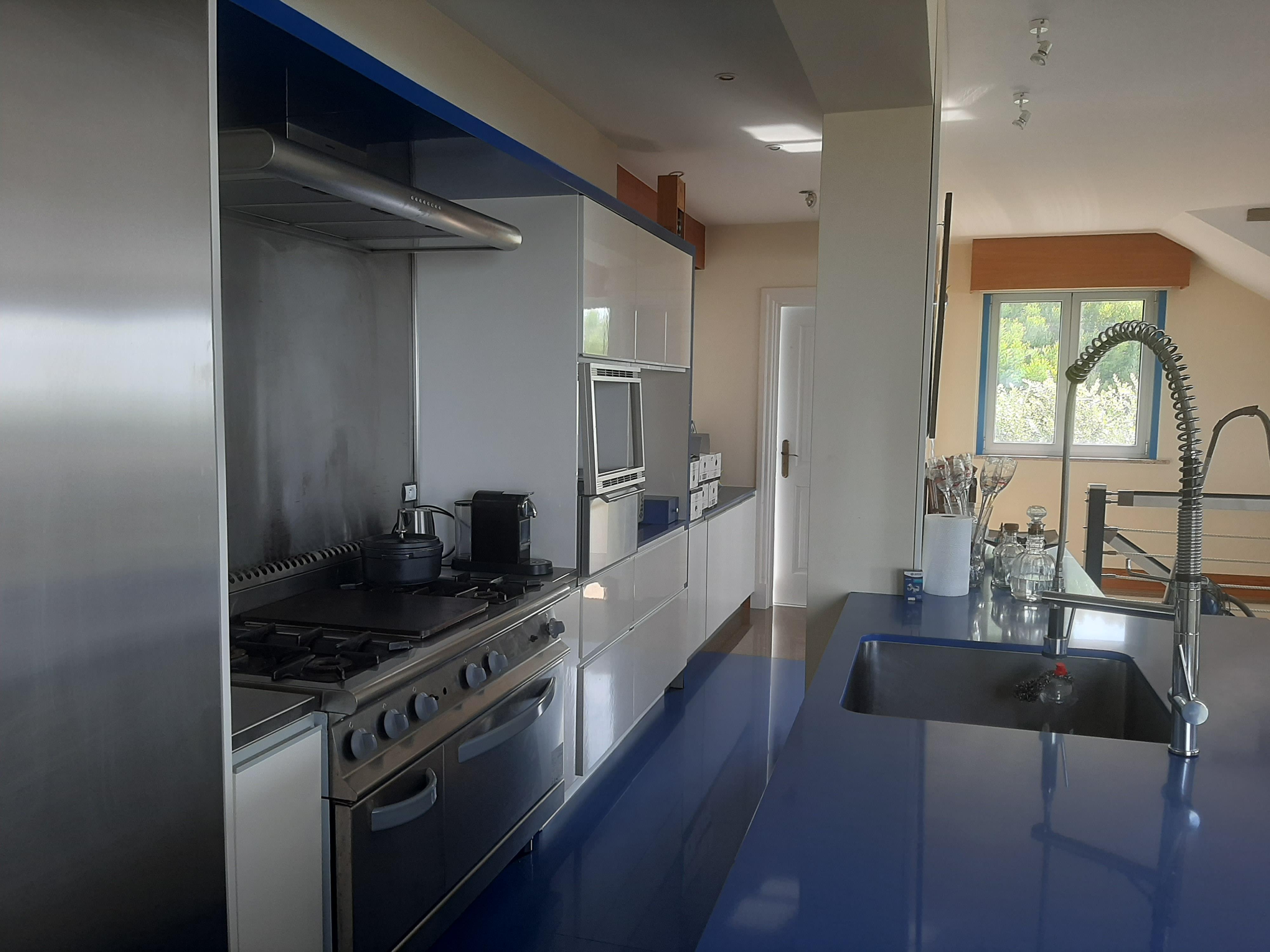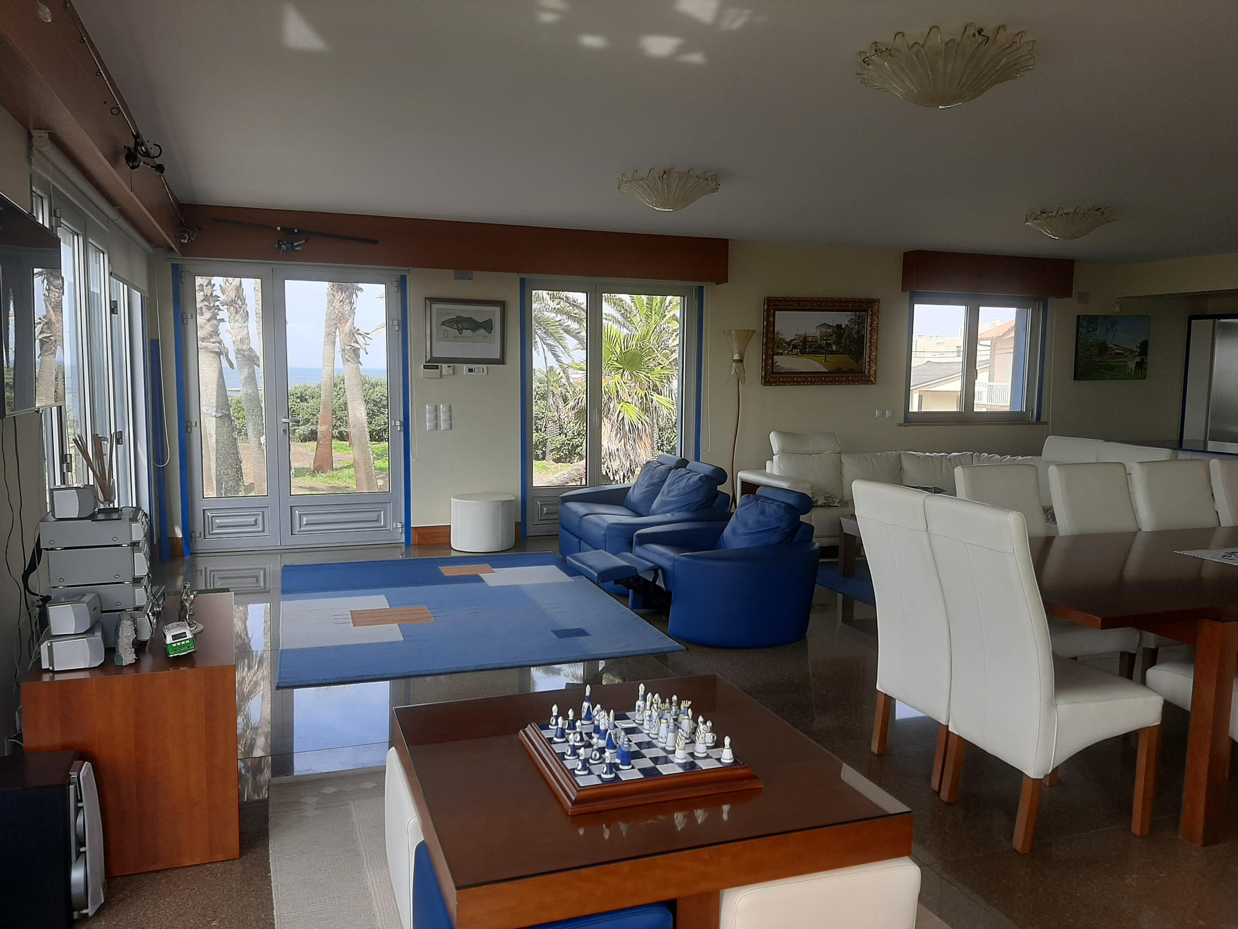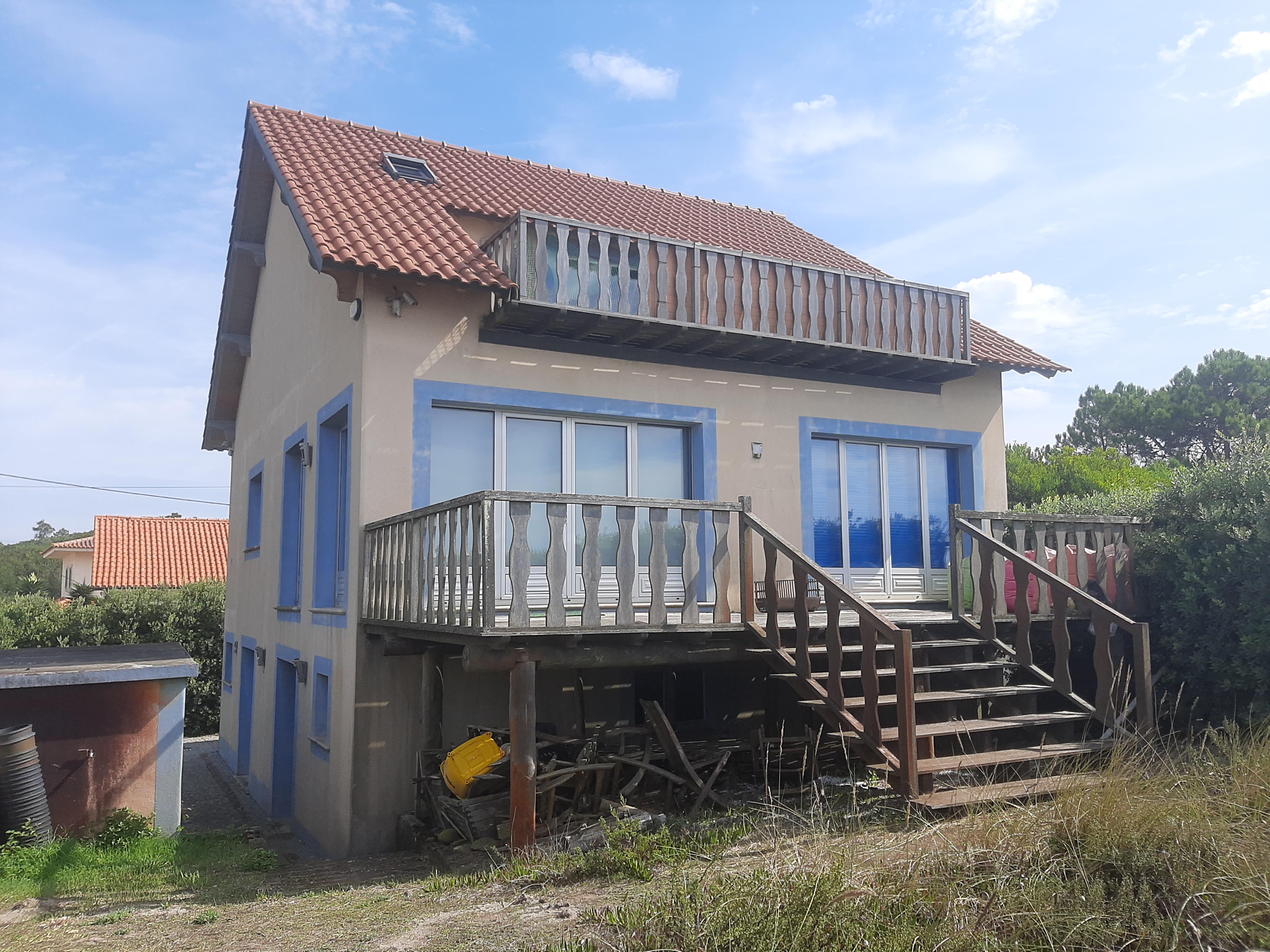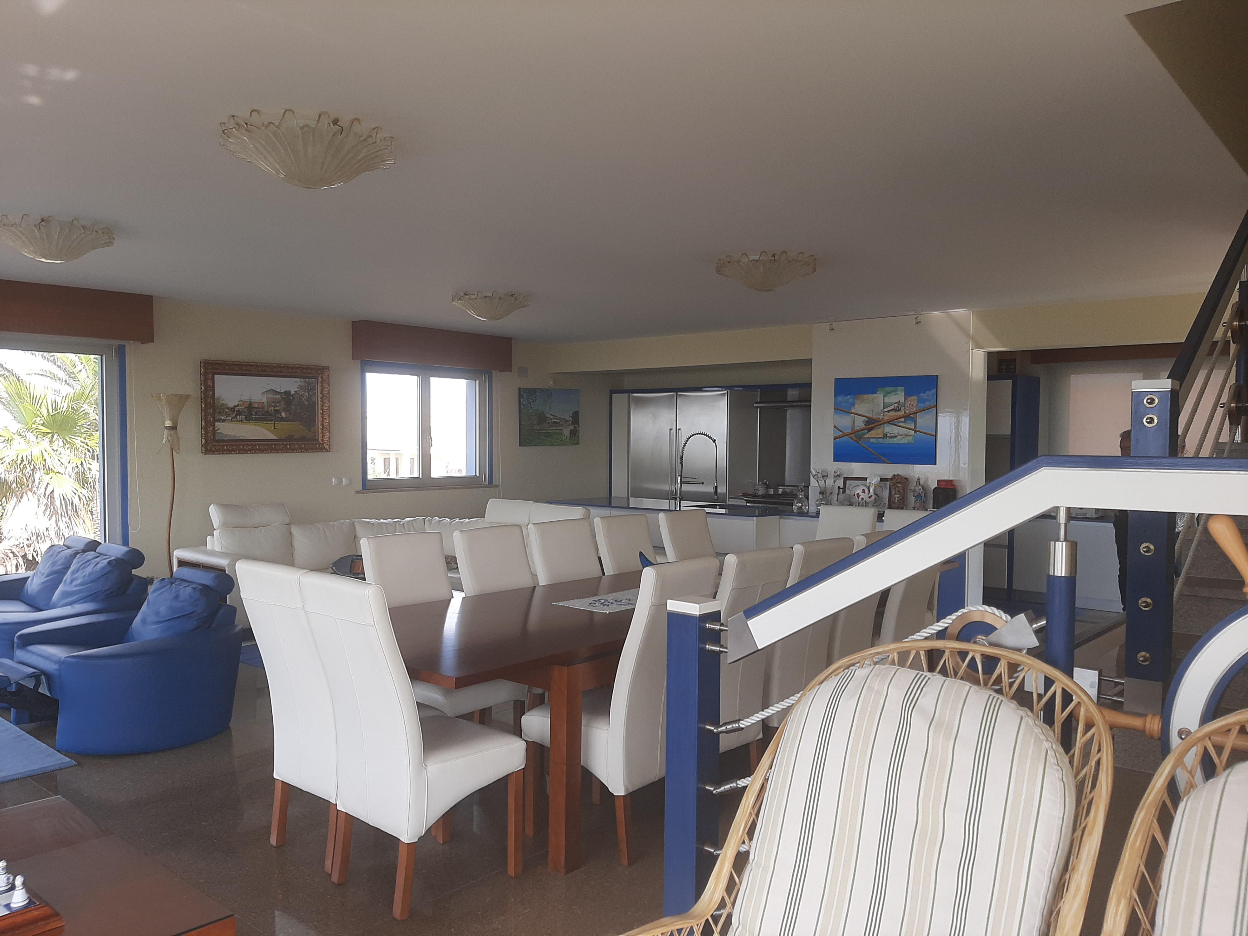 Esta moradia T4, todos os quartos suite, tem tudo isso e mais, retocada em tons de azul de uma ponta à outra, dois pisos, um alpendre e uma grande varanda, uma sala arejada e espaçosa para reunir toda a sua família.