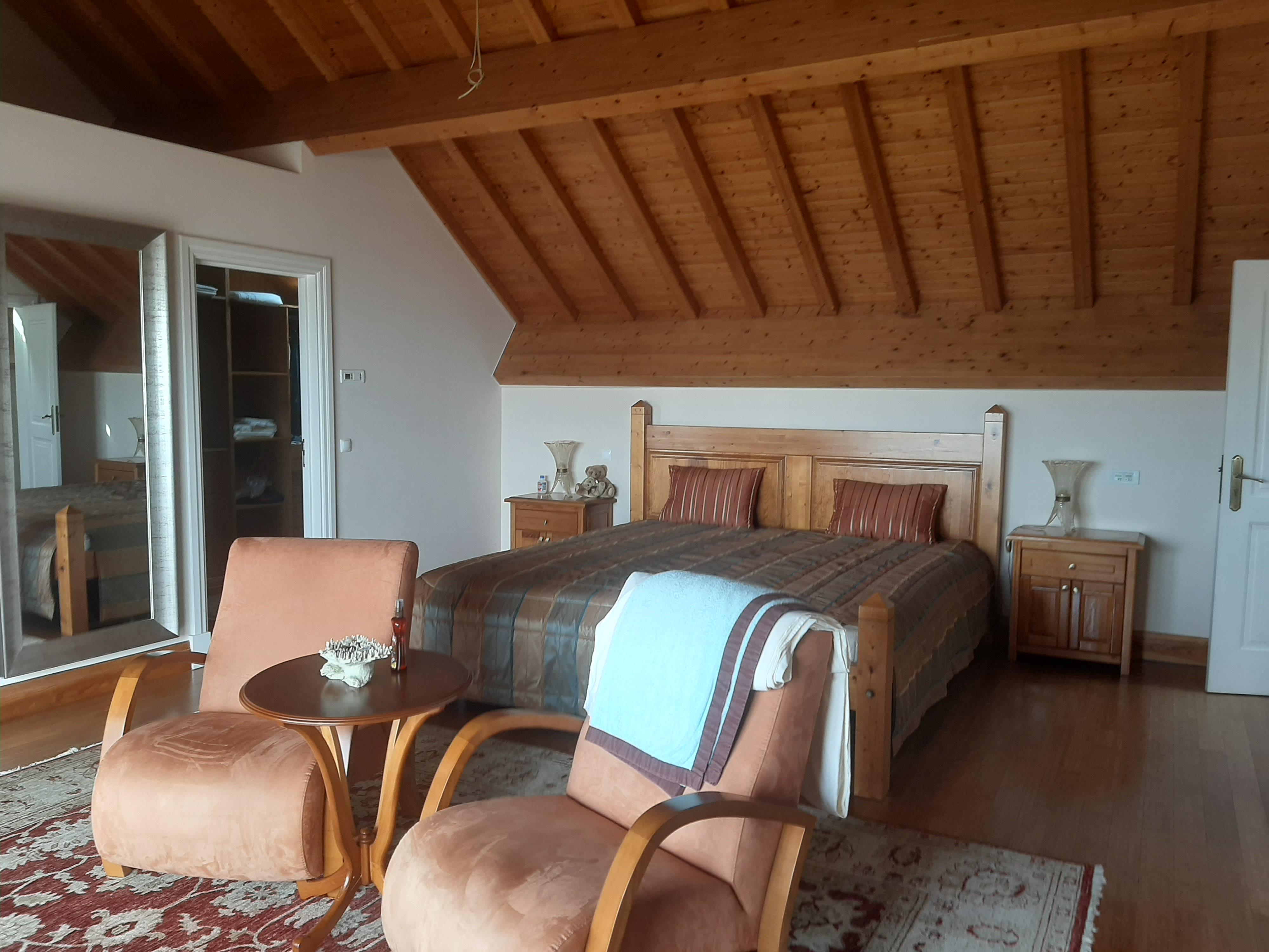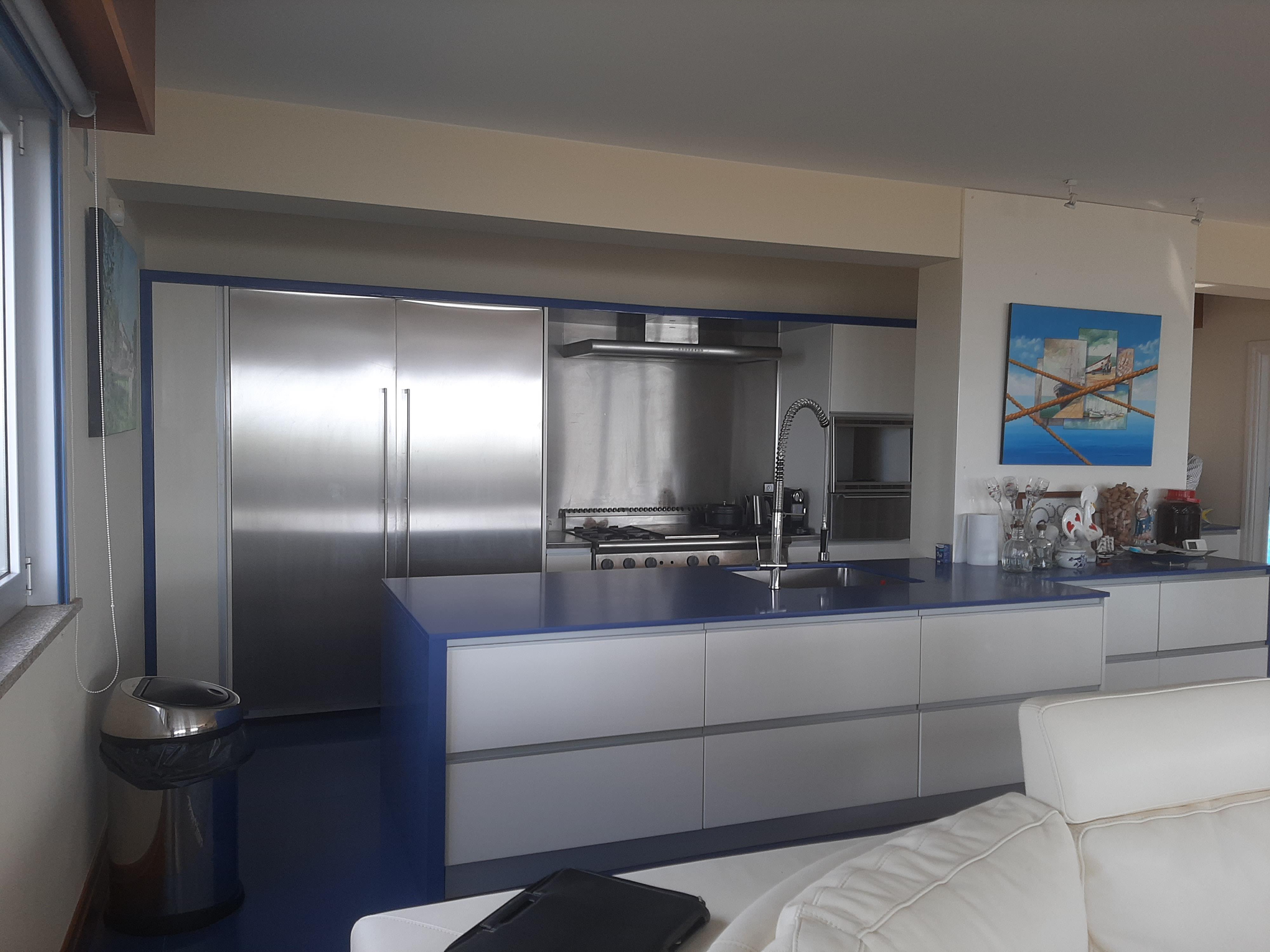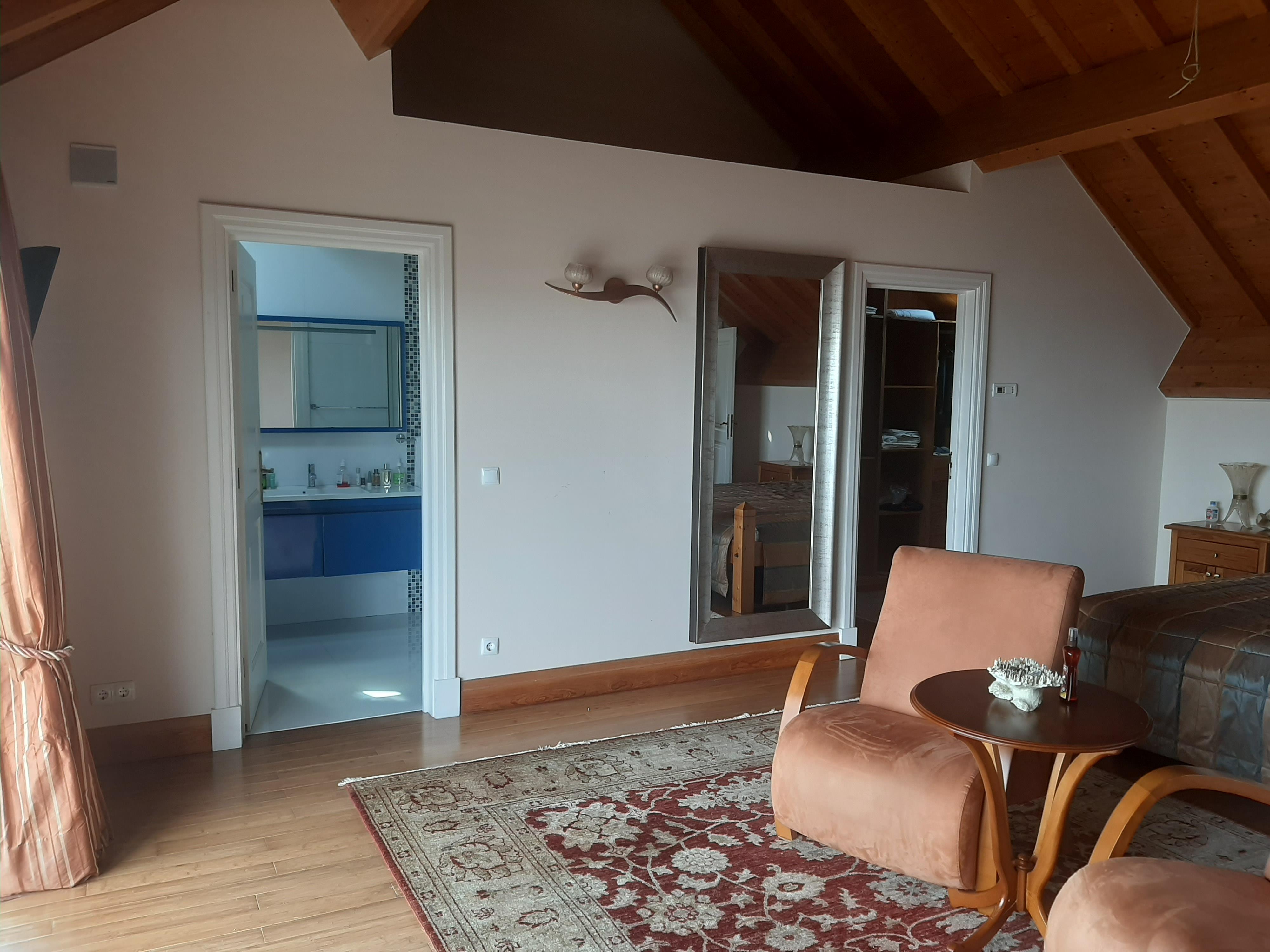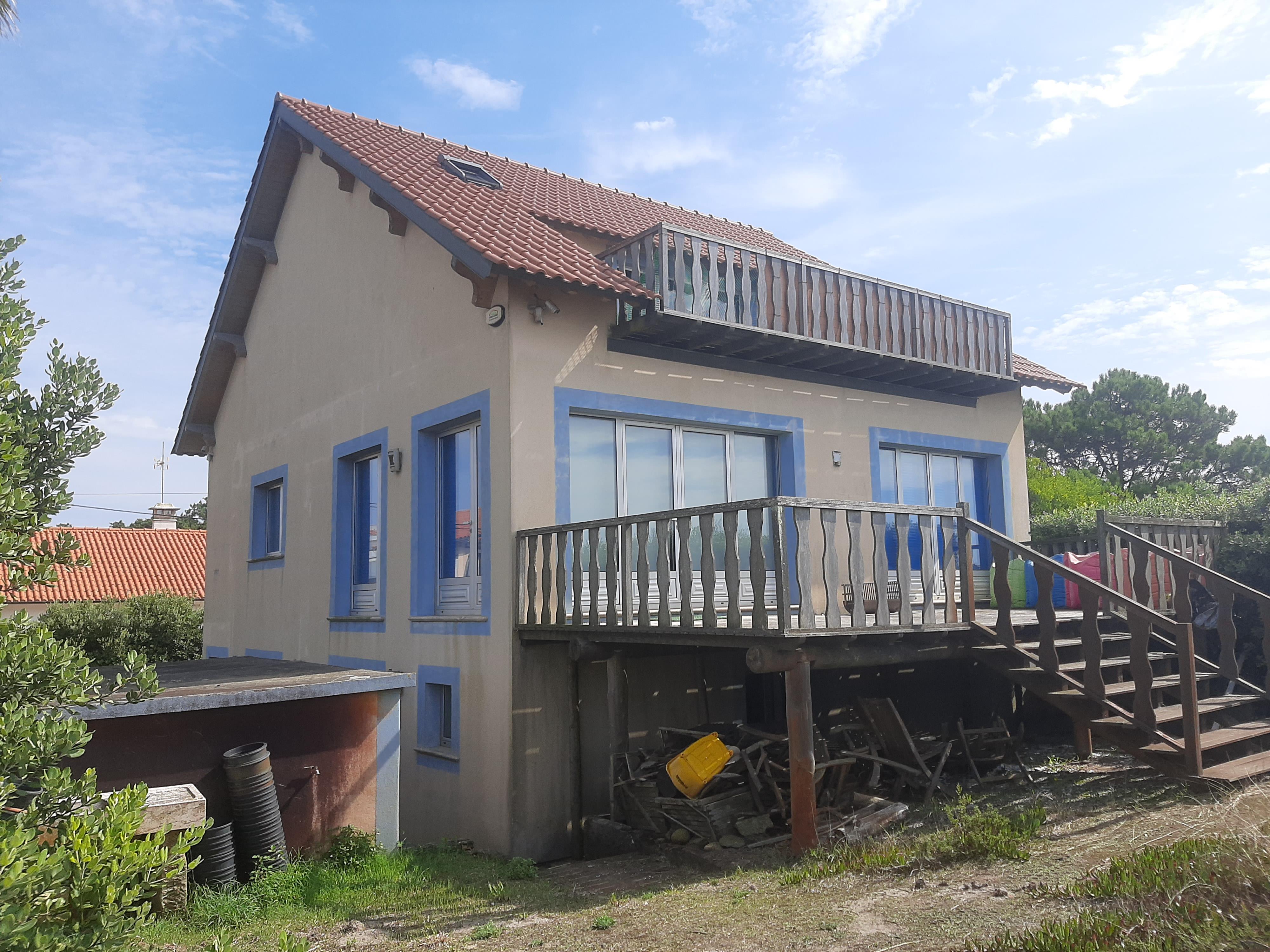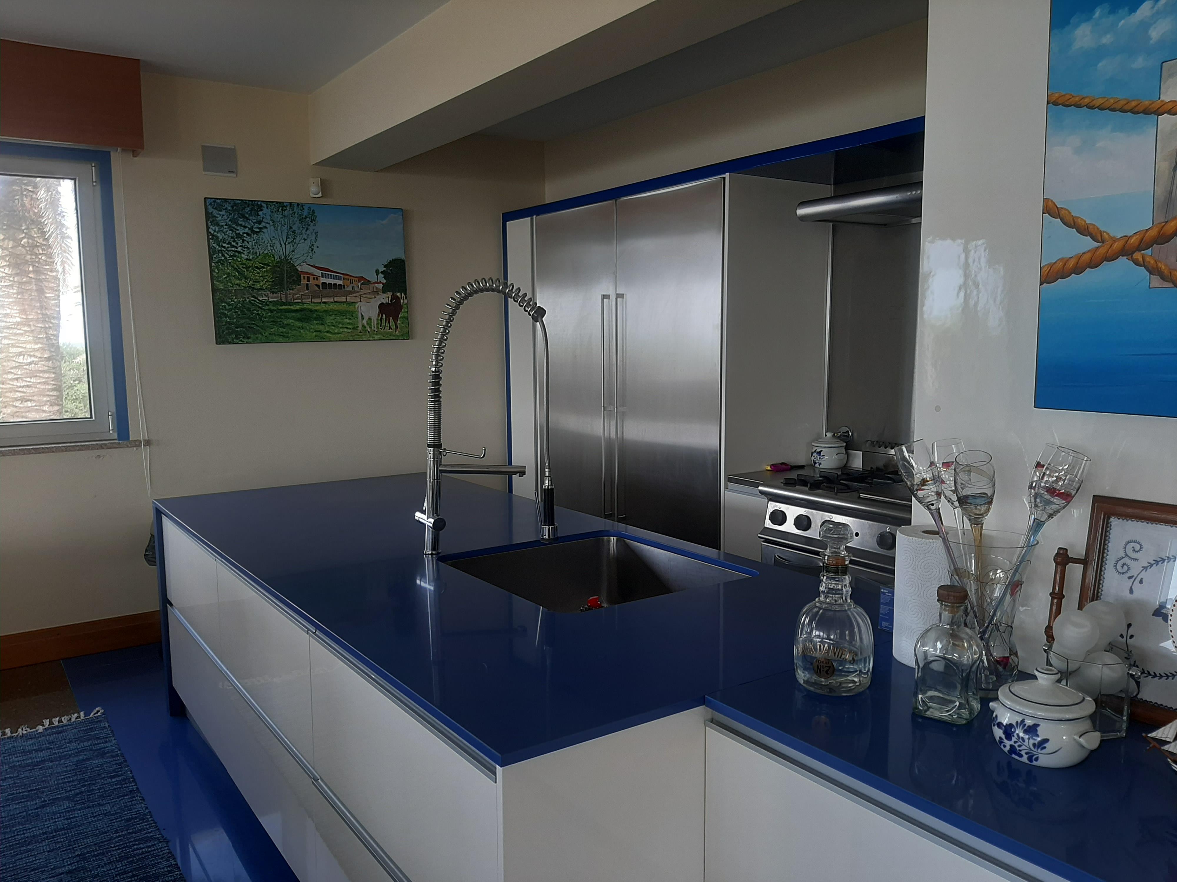 Esta moradia T4, todos os quartos suite, tem tudo isso e mais, retocada em tons de azul de uma ponta à outra, dois pisos, um alpendre e uma grande varanda, uma sala arejada e espaçosa para reunir toda a sua família.